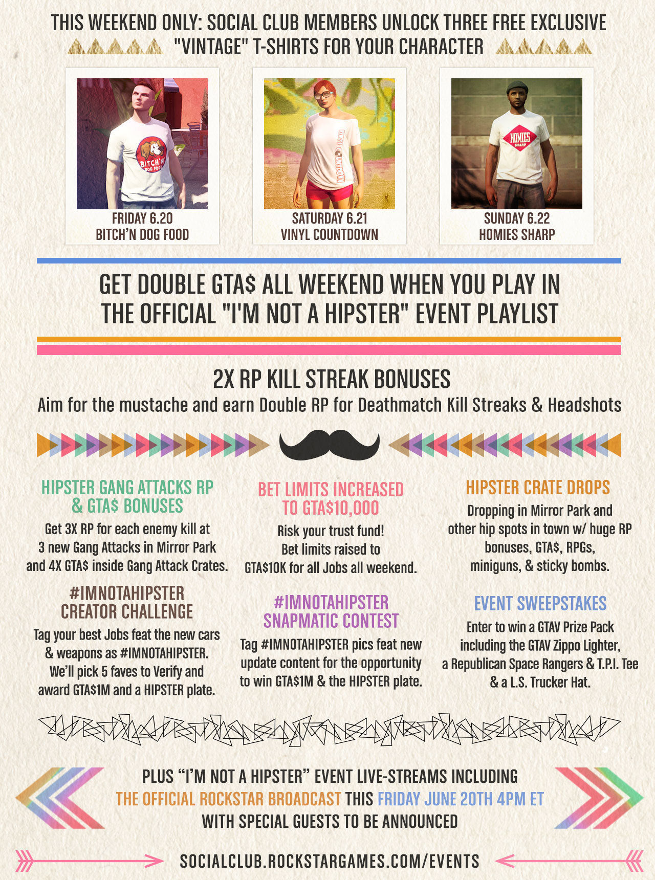Express your incredible individualism and stand out from the herd with The “I’m Not a Hipster” Update now available for Grand Theft Auto Online, featuring new retro print tees, brutally tight skinny jeans, hairstyles, ironic, post ironic and non-ironic tattoos, animal masks and more.