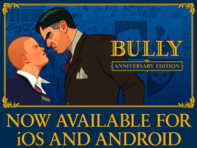 | | | | | | | In honor of the recent 10 year anniversary of Bully, the story of mischievous teenager Jimmy Hopkins and his adventures navigating adolescence and the social hierarchy of Bullworth Academy, Bully: Anniversary Edition is now available for iOS and Android devices. Bully: Anniversary Edition comes complete with everything from the original release and from Bully: Scholarship Edition. Featuring enhanced high resolution graphics, improved lighting, textures and character models, controls redesigned for touch gameplay, physical controller support and more. | |
